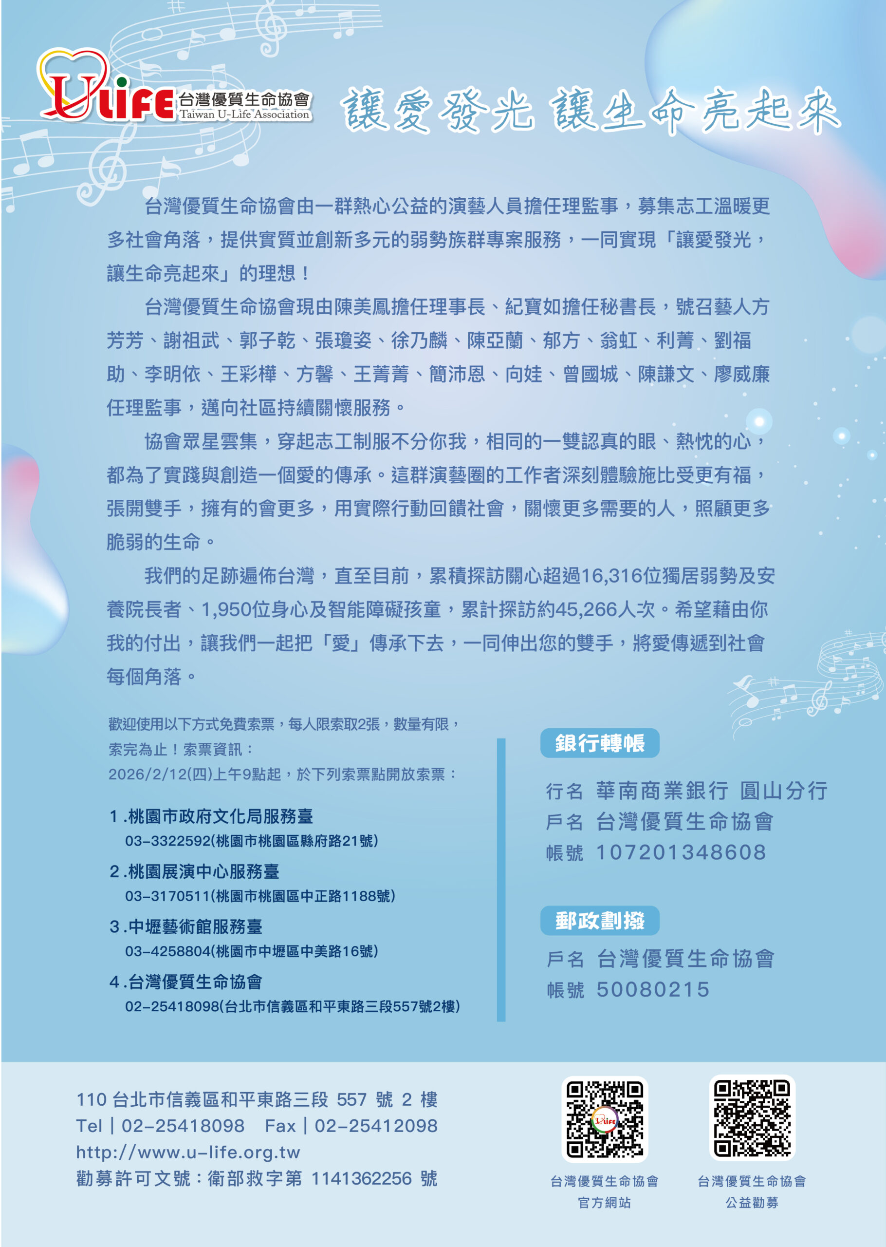 活動地點:桃園展演中心展演廳 (桃園市桃園區中正路1188號)